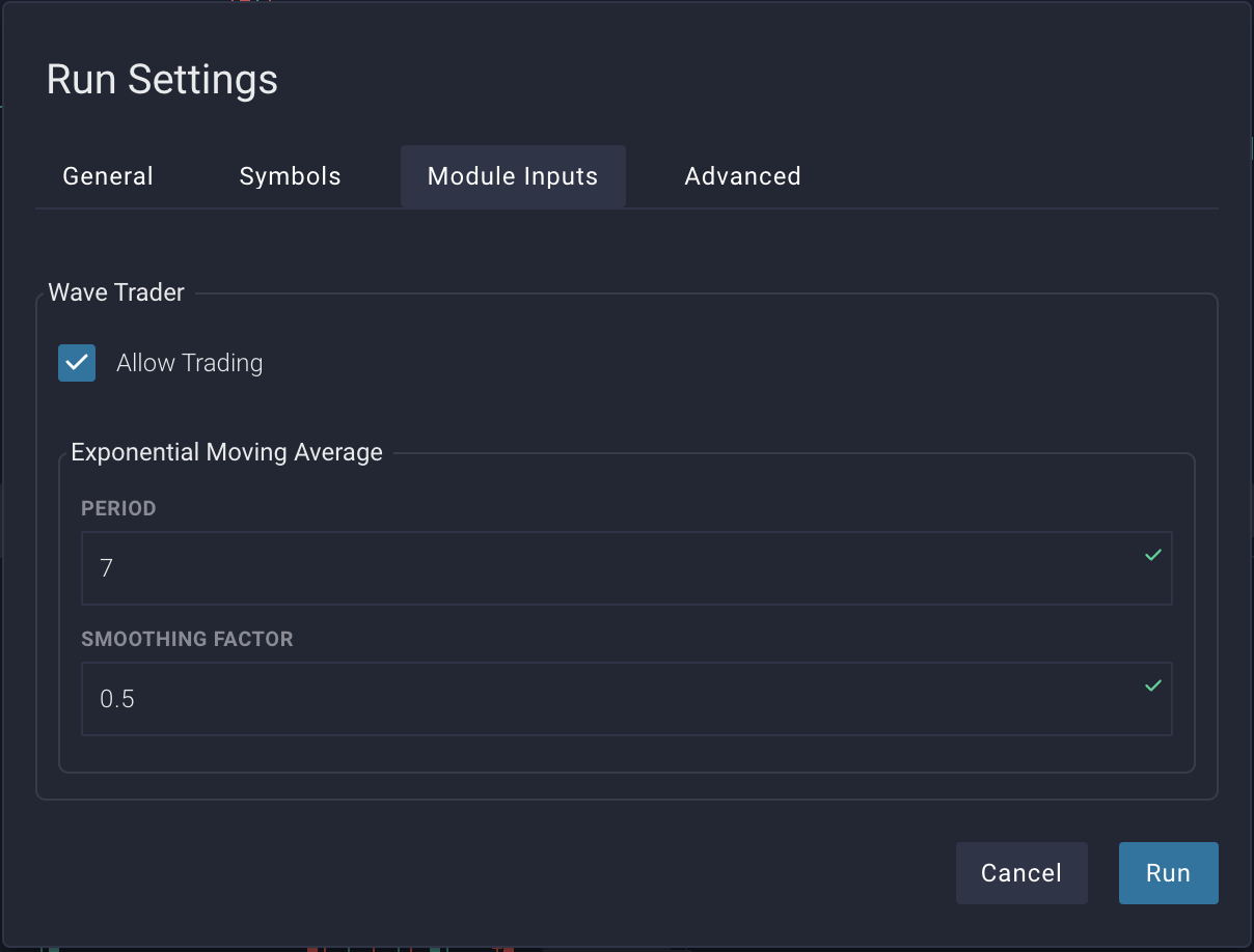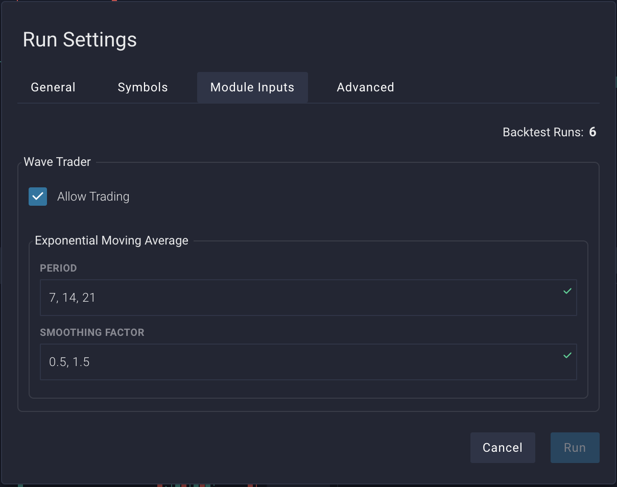 For example, below we provide multiple values to the Ema period and smoothing factor parameters: